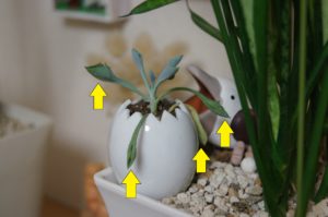 古い葉(黄色の矢印)を栄養にして
